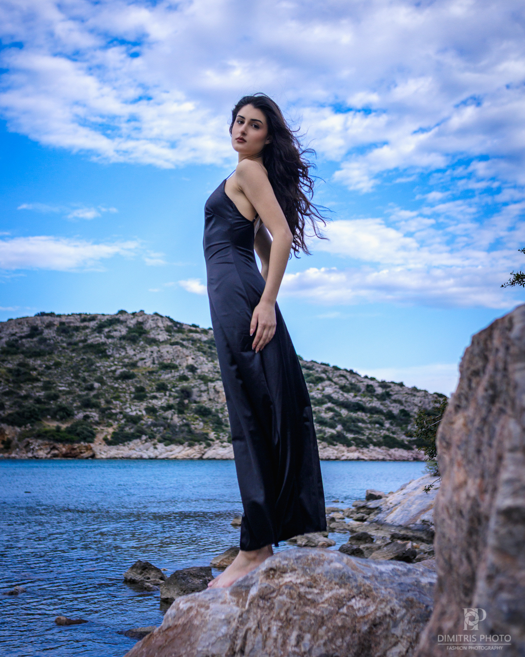 Η αντίθεση ανάμεσα στη minimal αισθητική του μαύρου swimwear και το τραχύ, γήινο περιβάλλον της παραλίας, δημιούργησε μια visual αφήγηση που θυμίζει σελίδες περιοδικού μόδας. Η κίνηση των μαλλιών και οι γραμμές του σώματος της Μαρίας αναδείχθηκαν μέσα από το crisp φως του Godox, προσφέροντας ένα αποτέλεσμα που ισορροπεί ανάμεσα στον δυναμισμό και τη θηλυκότητα.